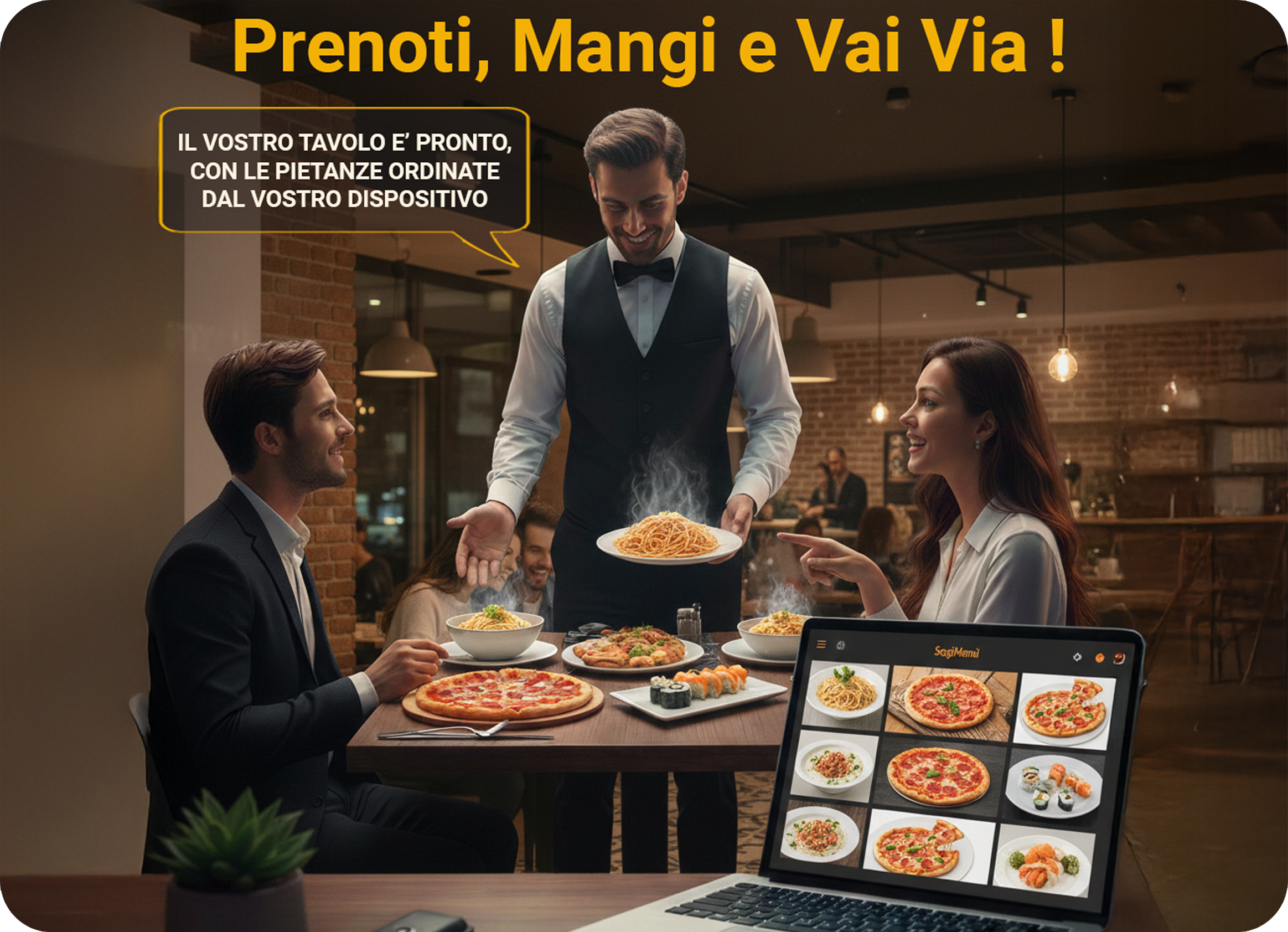 La piattaforma per prenotare il tuo tavolo, personalizzare il menù e pagare direttamente online. Senza sorprese di prezzo, senza attese... Ovunque ti trovi.
